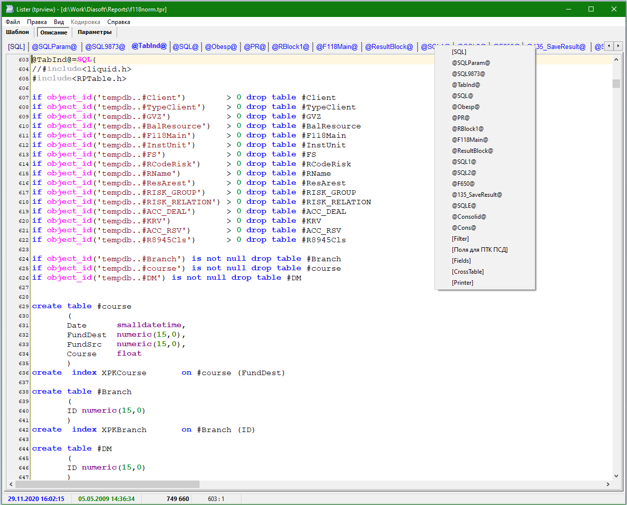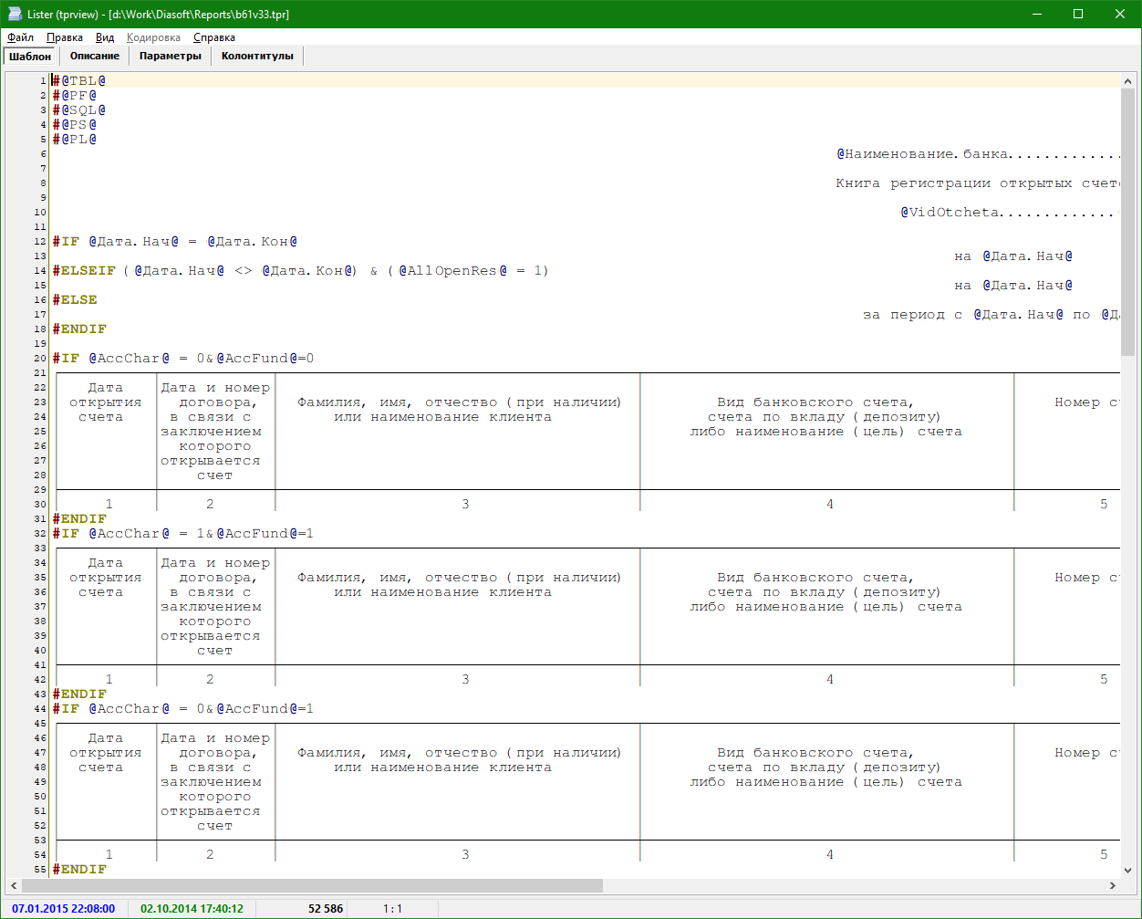 Total Commander Lister Plugin для просмотра файлов шаблонов отчётов АБС "Диасофт" (tpr). Для установки достаточно открыть архив в окне Total Commander и правильно ответить на нужные вопросы.